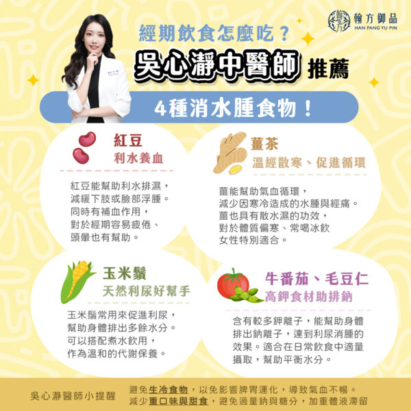 哪些食物可以有效消除經期水腫?吳心瀞中醫師推薦四種食物