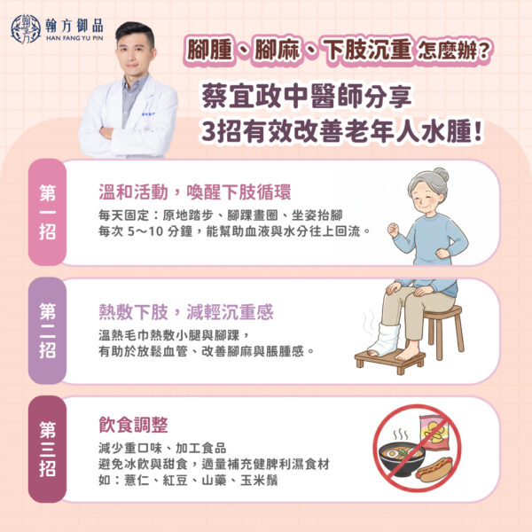 腳腫、腳麻、下肢沉重怎麼辦?蔡宜政中醫師分享3招有效改善老年人水腫!