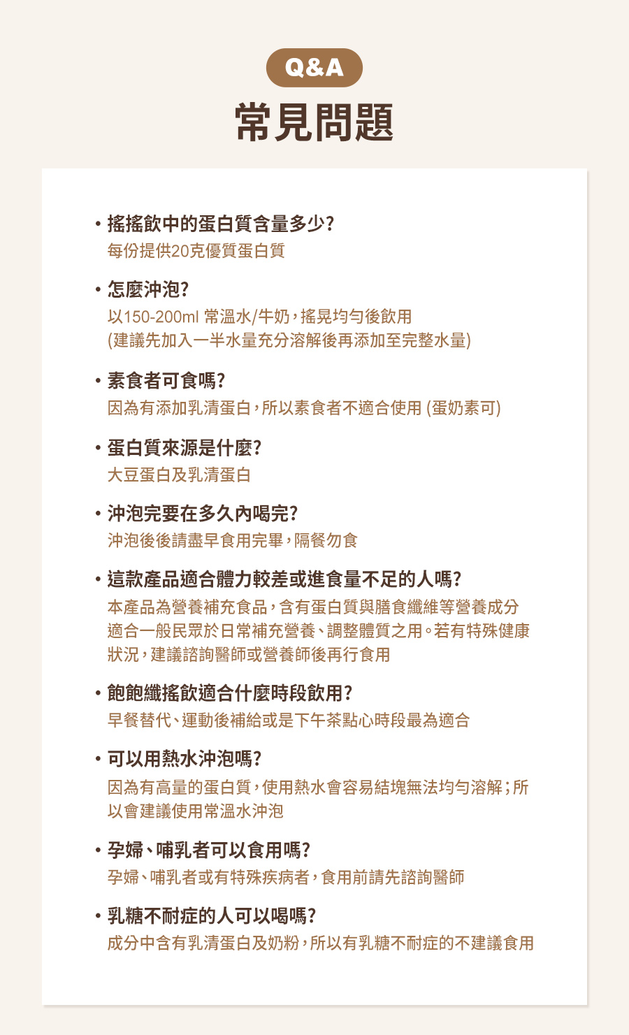 可加牛奶/豆漿增添風味及營養,內含高蛋白不建議熱水沖泡