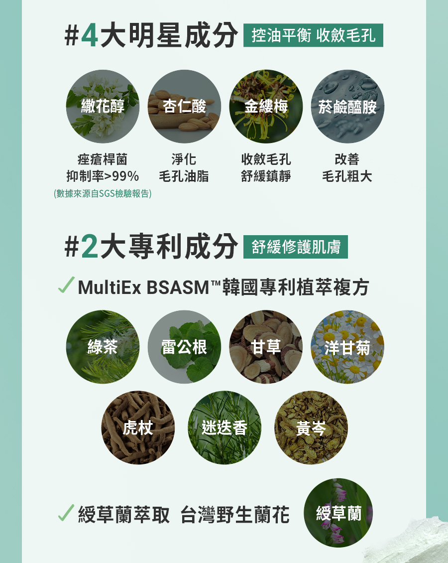 🔸繖花醇x杏仁酸x菸鹼醯胺 | 控油收斂 淨化毛孔